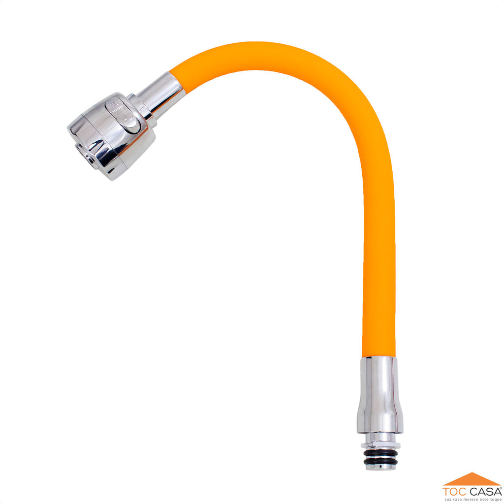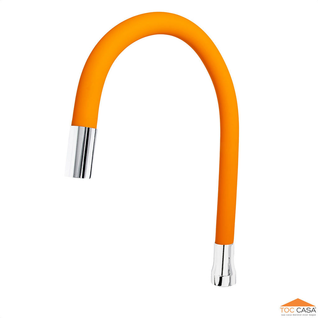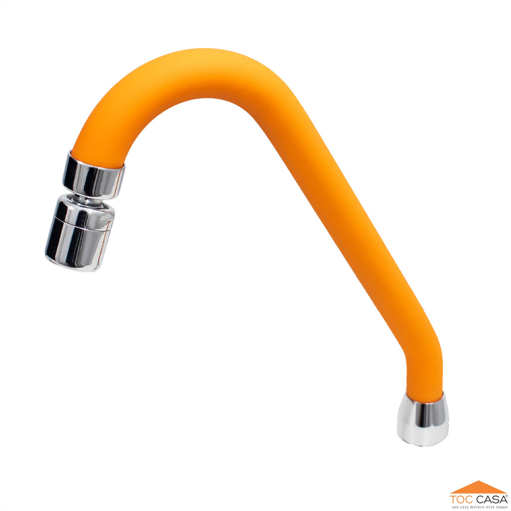 Tubo Bica Móvel Silicone Laranja E Arejador Fixo Em Latão