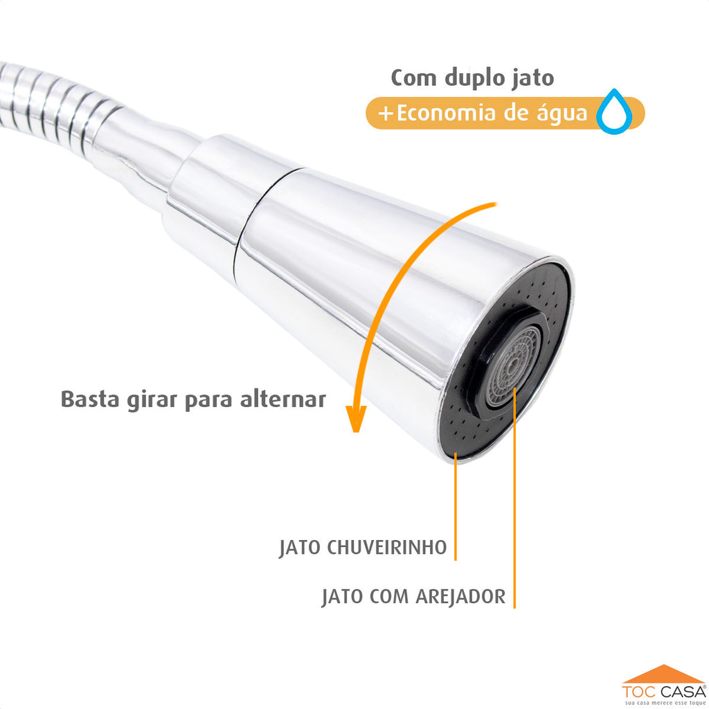 Tubo Flexível Inox Cromado Arejador Cone Duplo Jato Gourmet