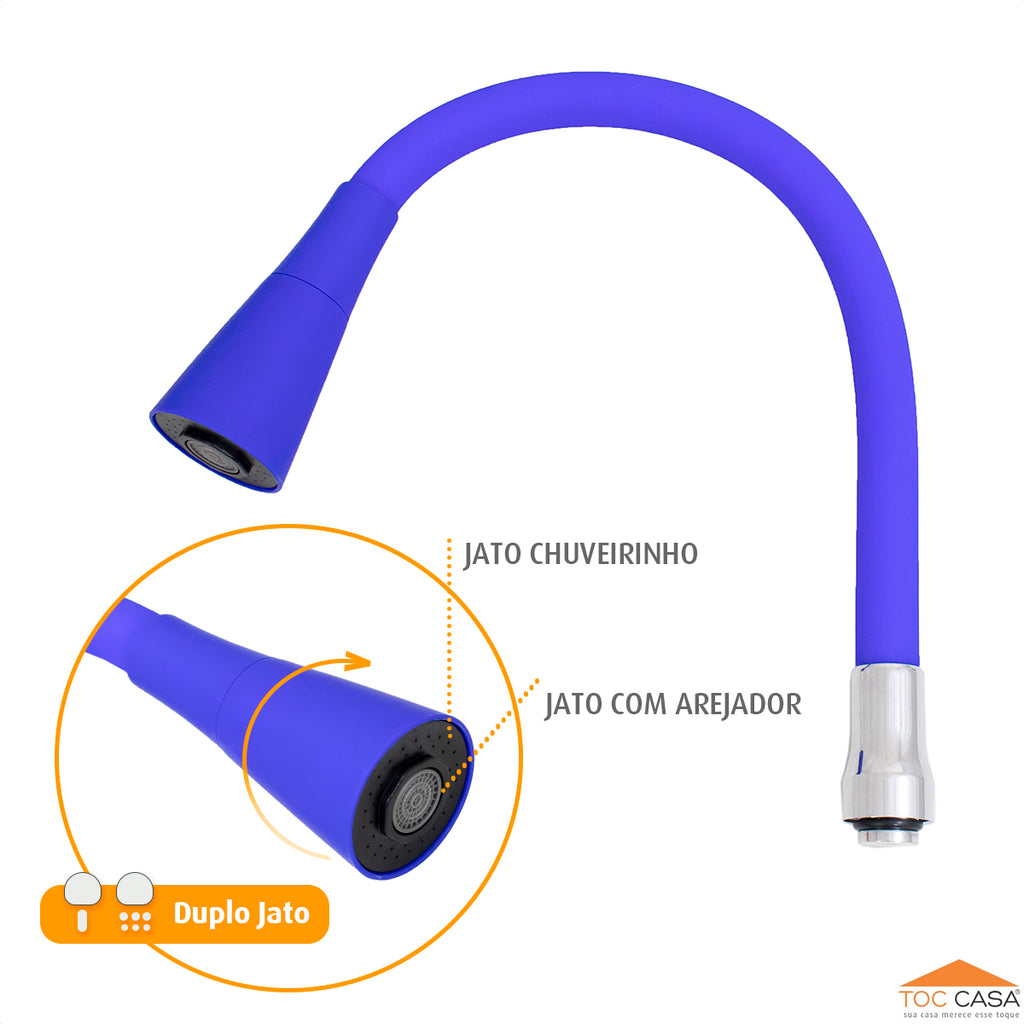 Tubo Flexível Silicone Azul E Arejador Cone Duplo Jato