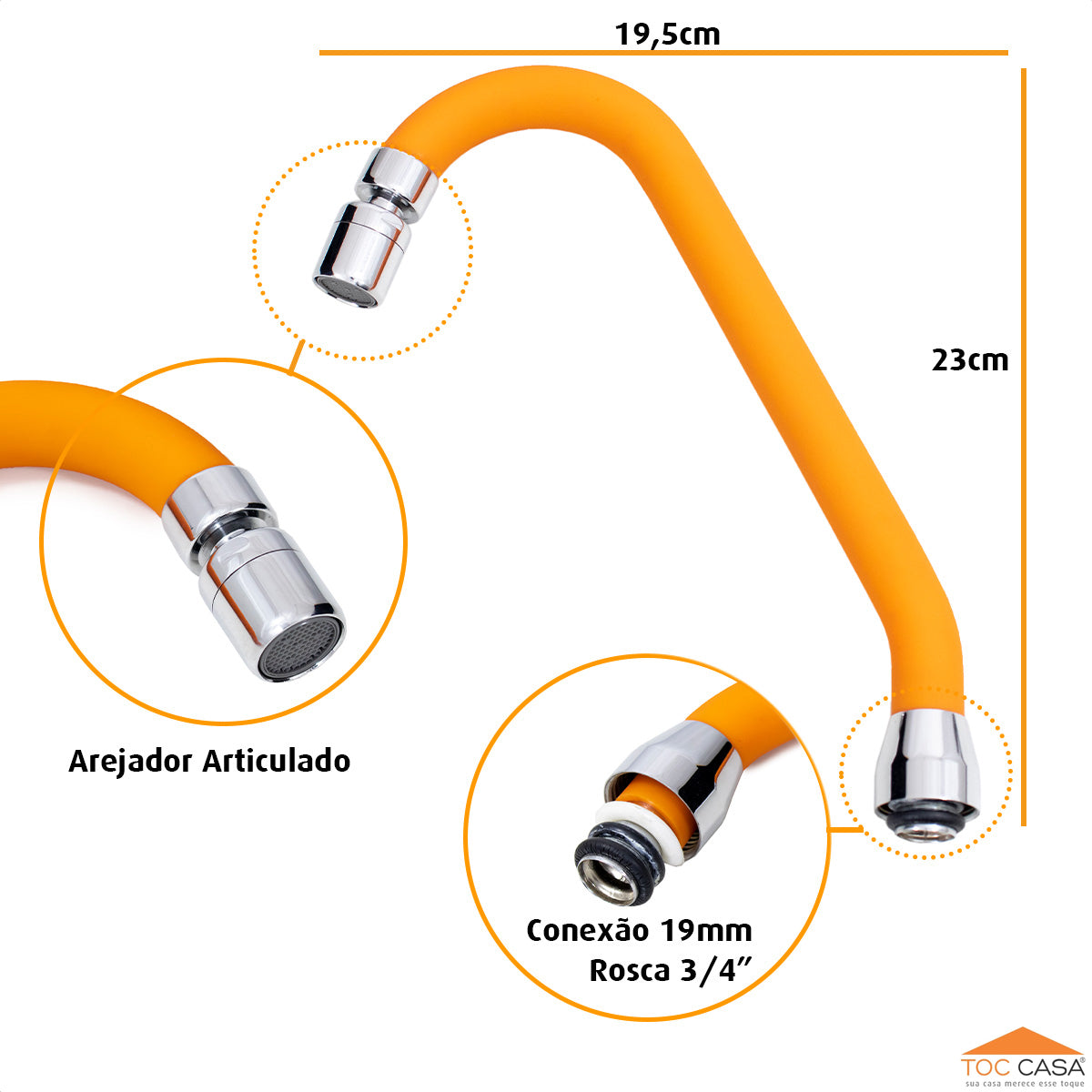 Tubo Bica Móvel Silicone Laranja E Arejador Fixo Em Latão está em espera e será enviado assim que estiver de volta em estoque