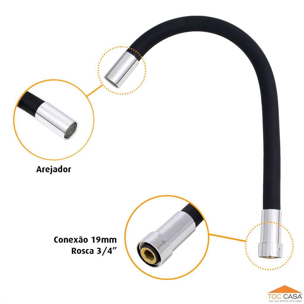 Tubo Cozinha 3/4 Flex Design Silicone Preto E Arejador Fixo está em espera e será enviado assim que estiver de volta em estoque