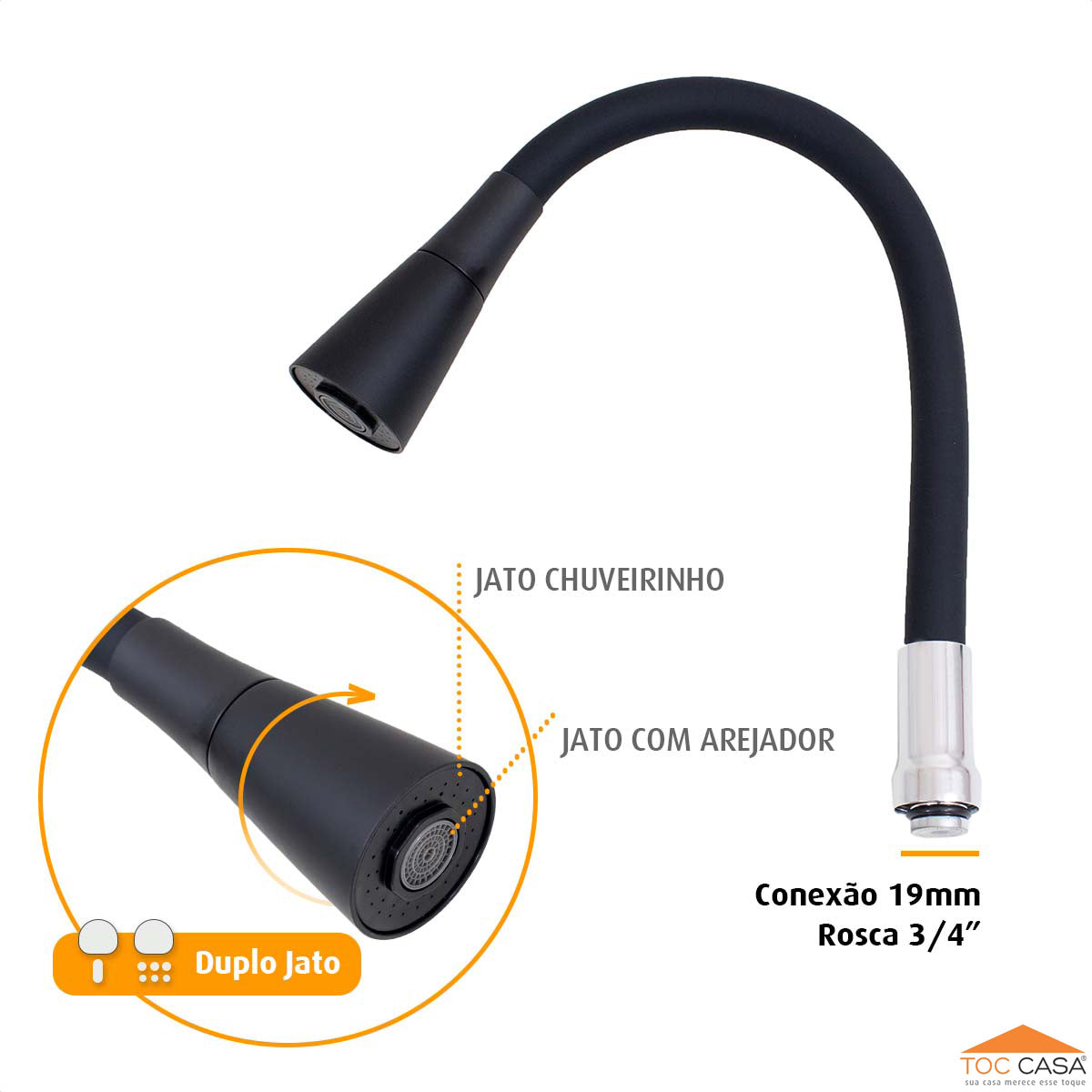 Tubo Flexível Silicone Preto E Arejador Cone Duplo Jato está em espera e será enviado assim que estiver de volta em estoque