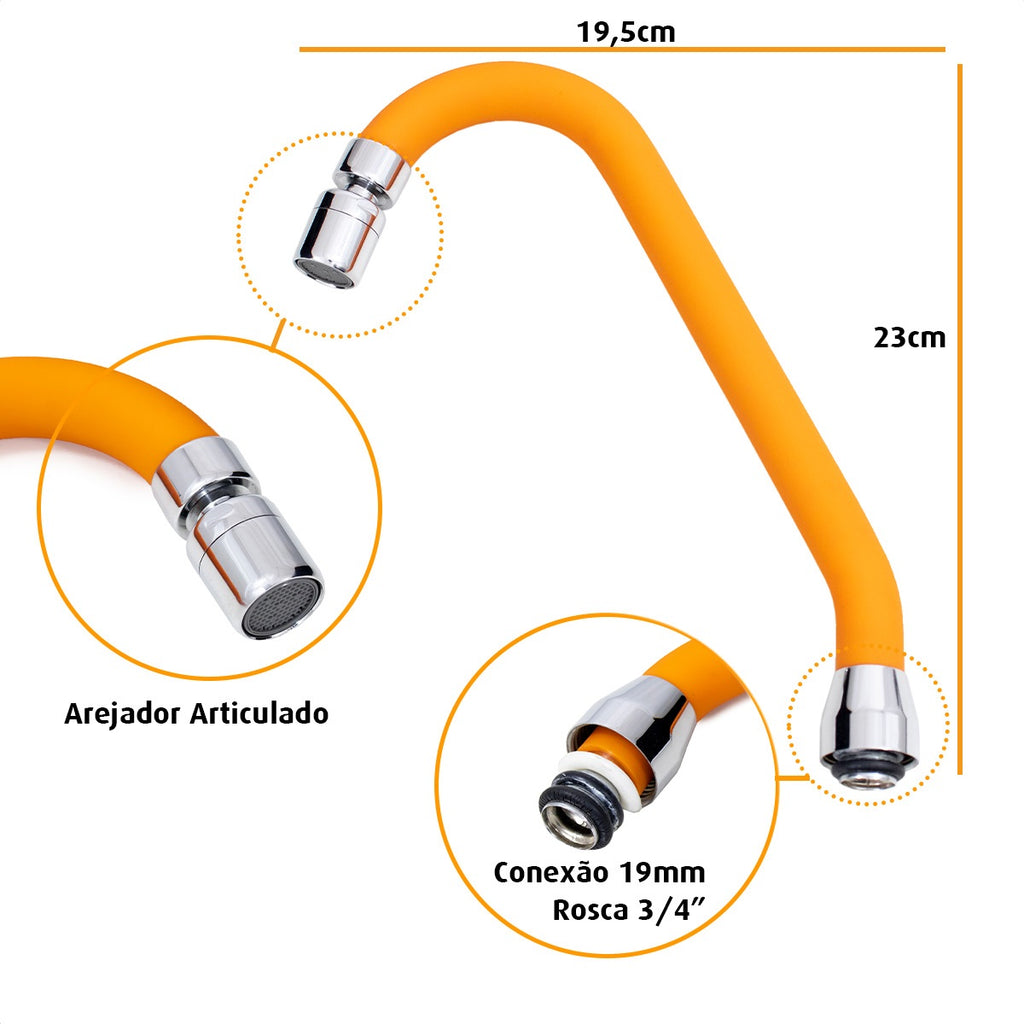 Tubo J Silicone Laranja Arejador Articulável Latão Cromado