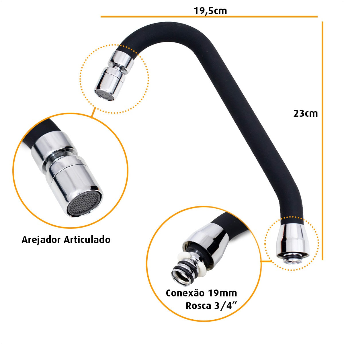 Tubo J Silicone Preto Arejador Articulavel Latão Cromado está em espera e será enviado assim que estiver de volta em estoque