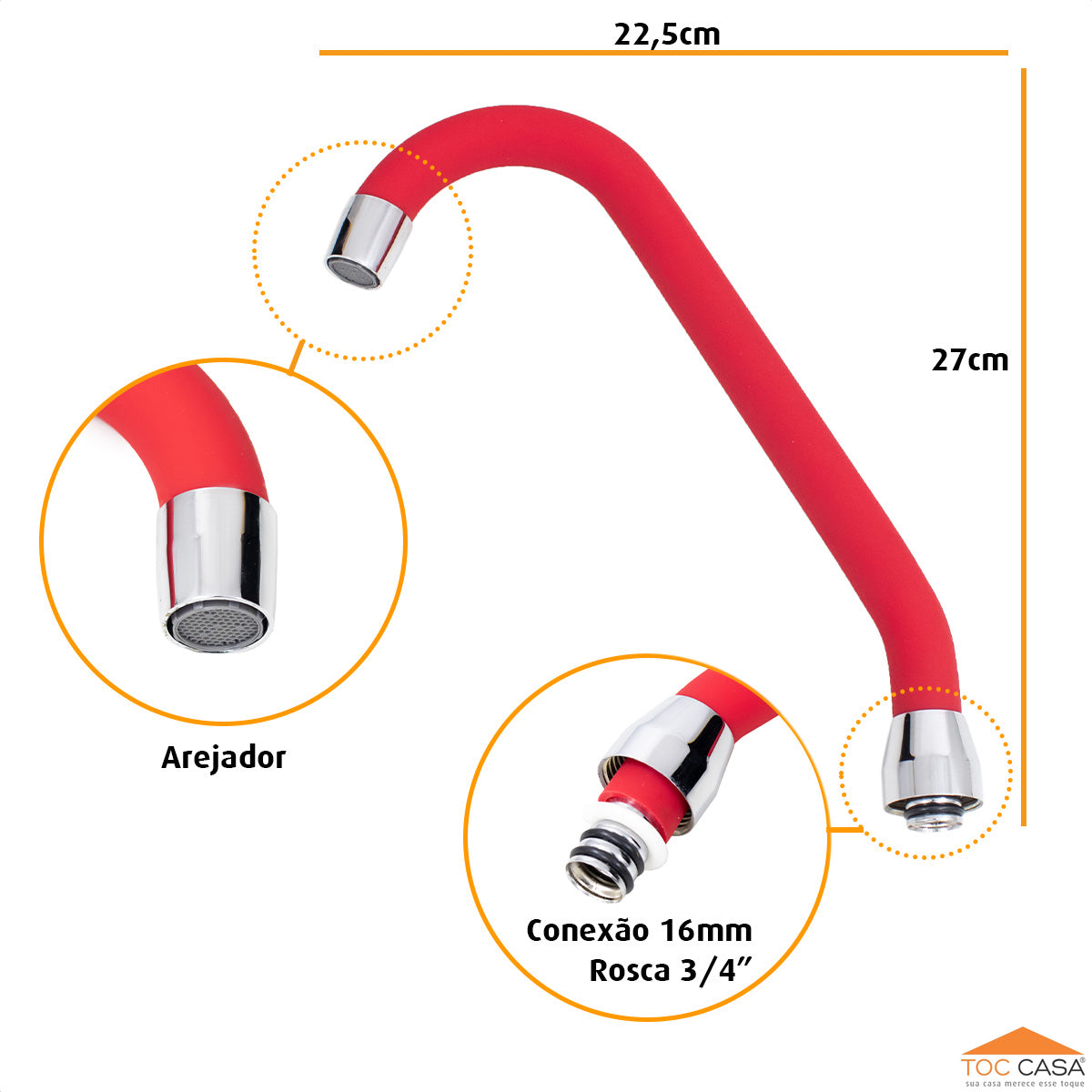 Tubo J Silicone Vermelho Arejador Fixo Latão Cromado
