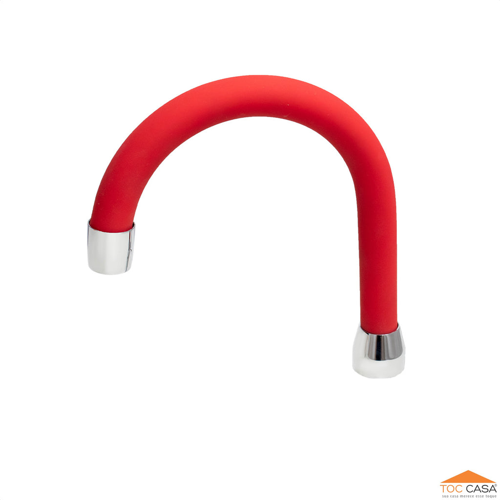 Tubo Bica Móvel Lavatório Silicone Vermelho Arejador Fixo