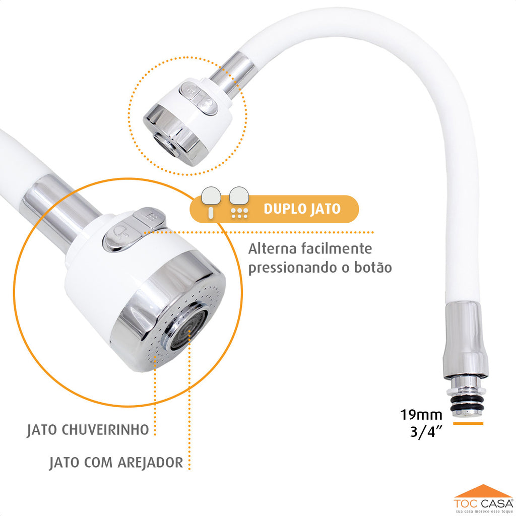 Tubo Flexível Silicone Branco E Arejador Gourmet Duplo Jato