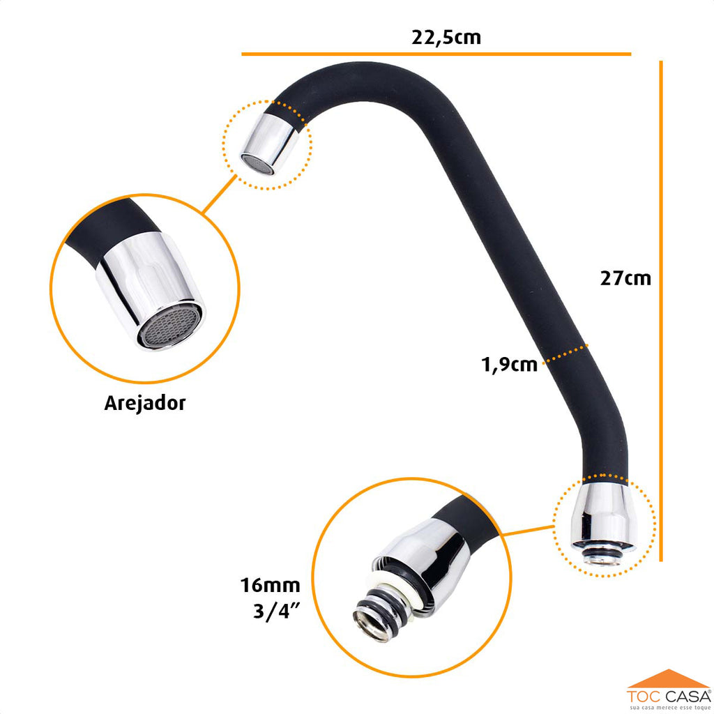 Tubo Flexível Silicone Preto P/ Cozinha E Arejador Fixo