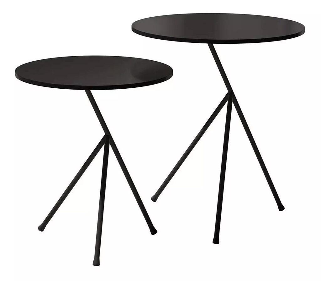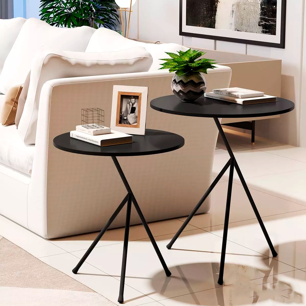 Conjunto Mesas Laterais Itália Preta Aço Carbono 60cm - 50cm