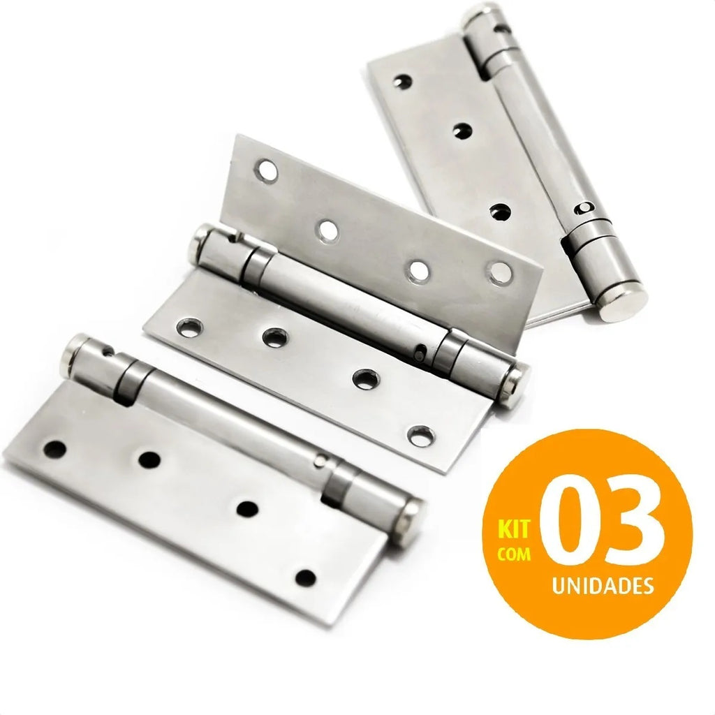 Dobradiça Com Mola 4x3 Inox Polido Kit 03 Pçs