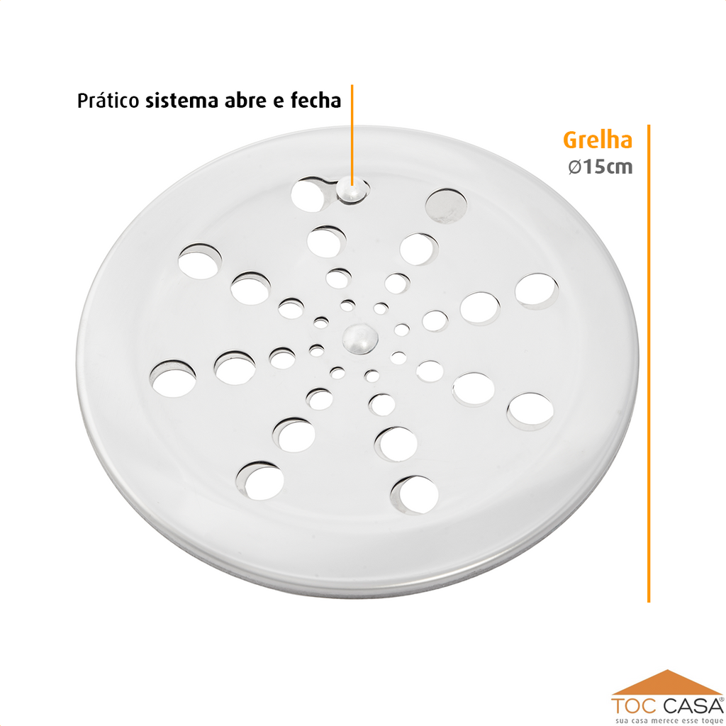 Grelha Redonda Abre E Fecha De Inox Para Banheiro 15cm