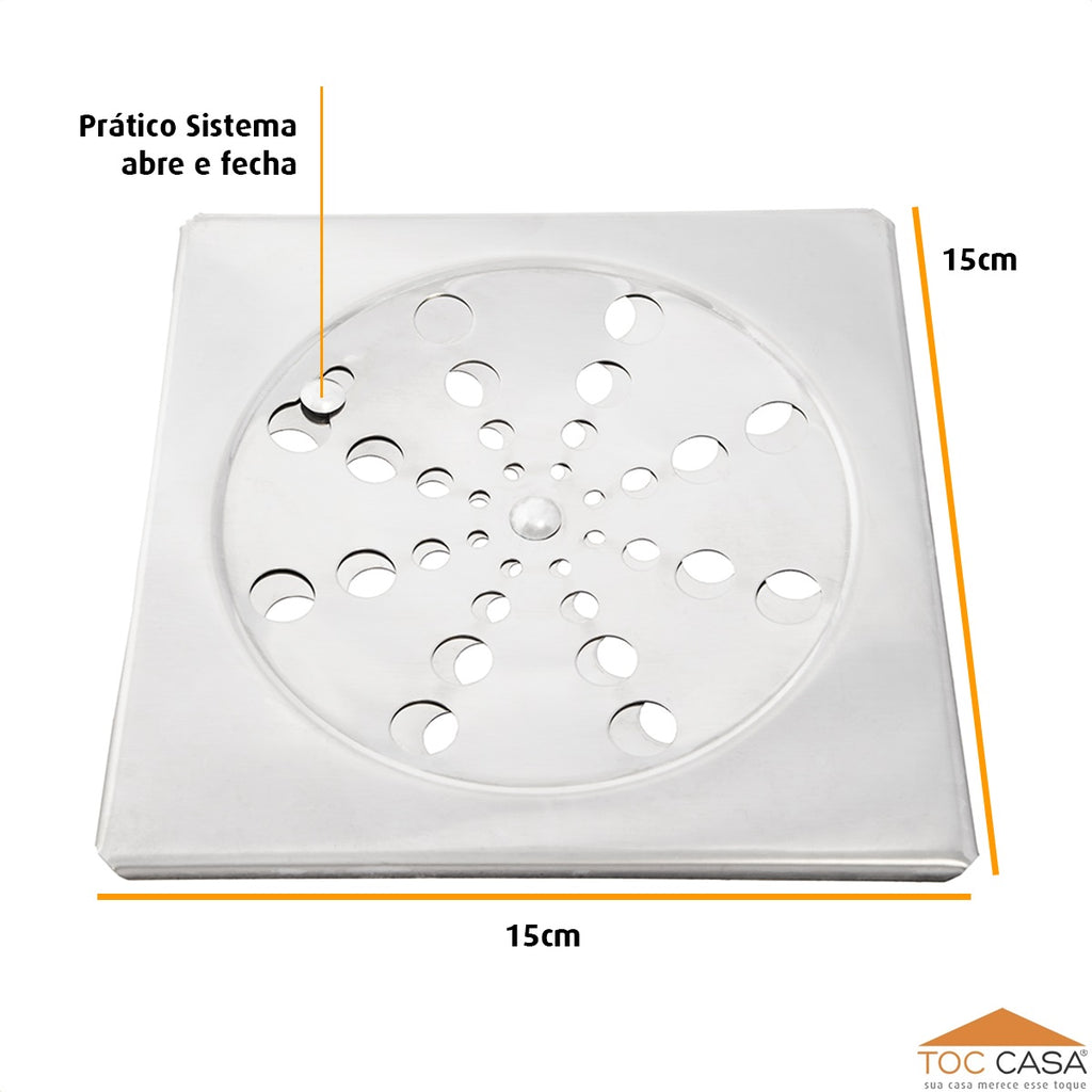Grelha Abre E Fecha De Inox Para Banheiro Quadrada 15x15cm