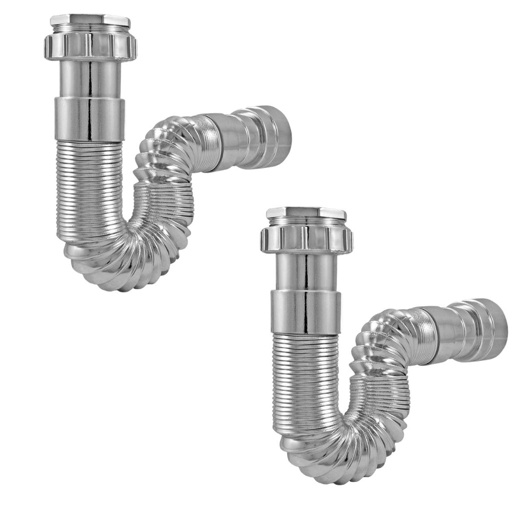 Kit 2 - Sifão Corrugado Extensível Universal 70cm - Cromado