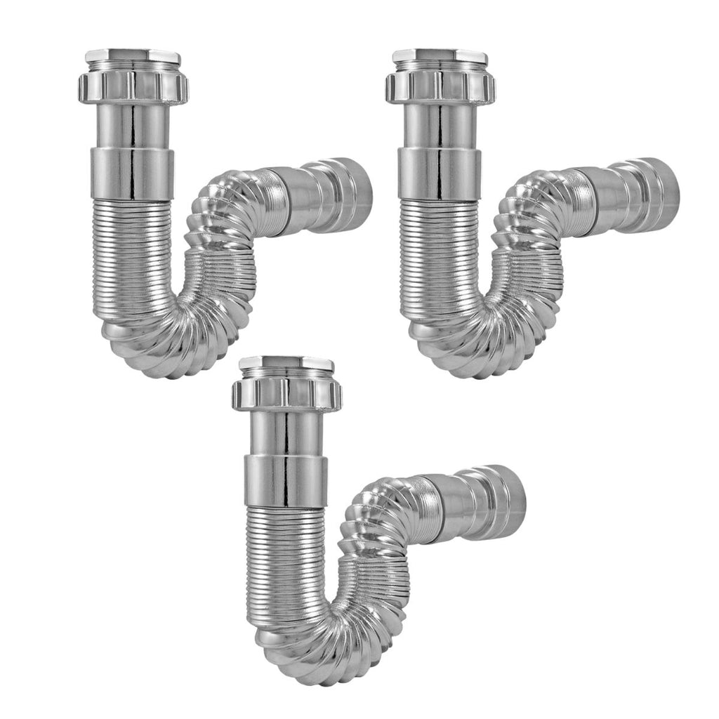 Kit 3 - Sifão Corrugado Extensível Universal 70cm - Cromado