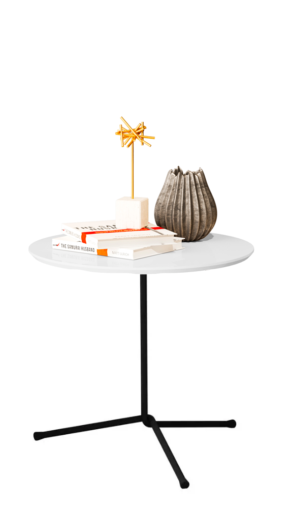 Mesa Lateral Industrial 3 Andares Base Preto e Tampo Branco De Canto Redonda