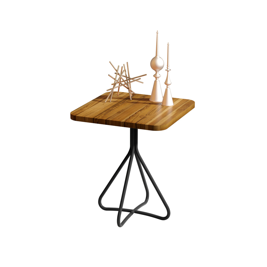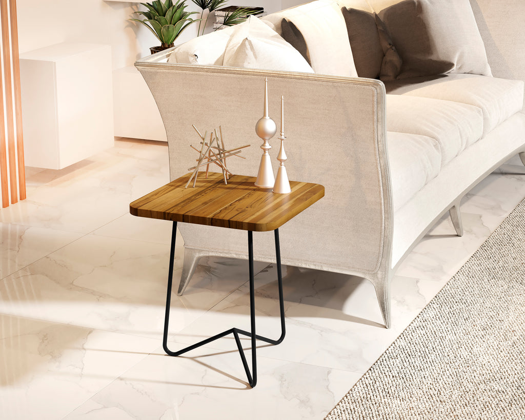 Mesa Lateral Milão 60cm Madeirado Quadrada Base Em Ferro Maciço e Tampo Em Madeira Reflorestada