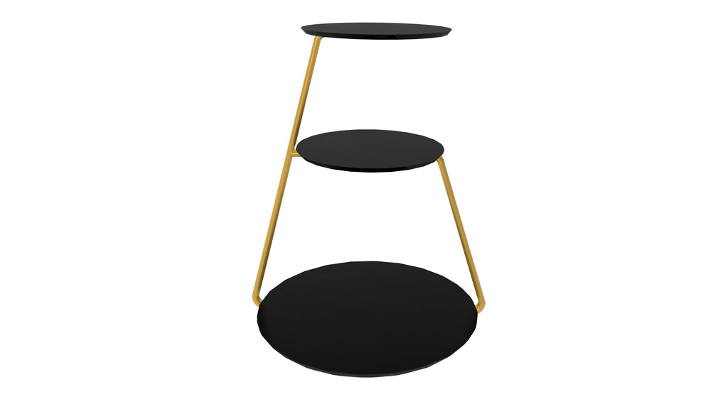 Mesa Lateral Industrial 3 Andares Base Dourado e Tampo Preto De Canto Redonda