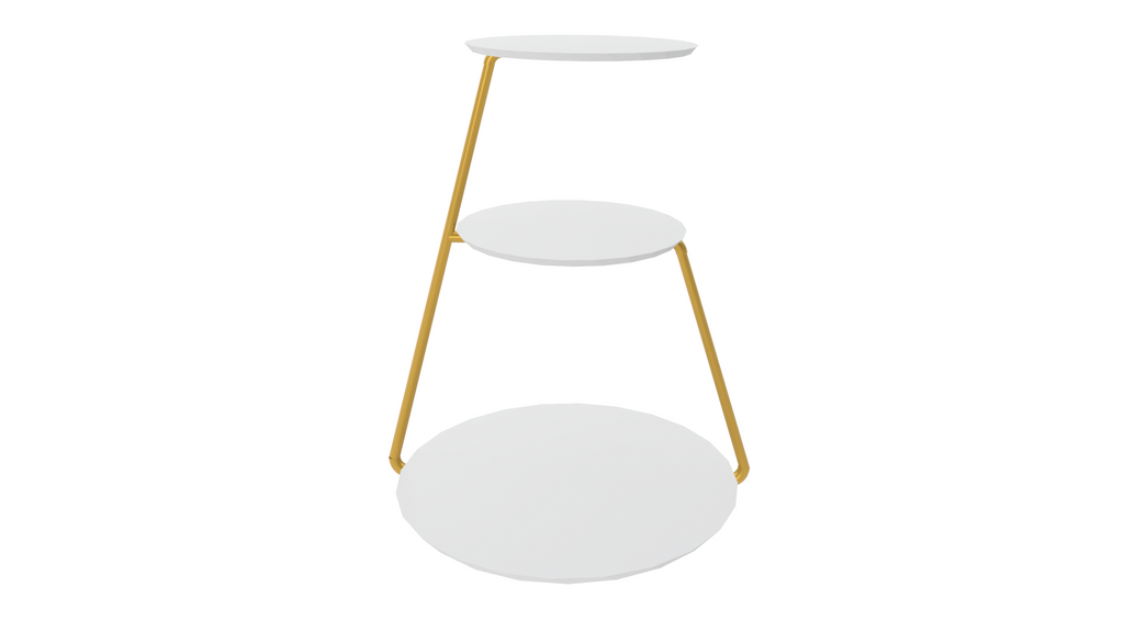 Mesa Lateral Industrial 3 Andares Base Dourado e Tampo Branco De Canto Redonda