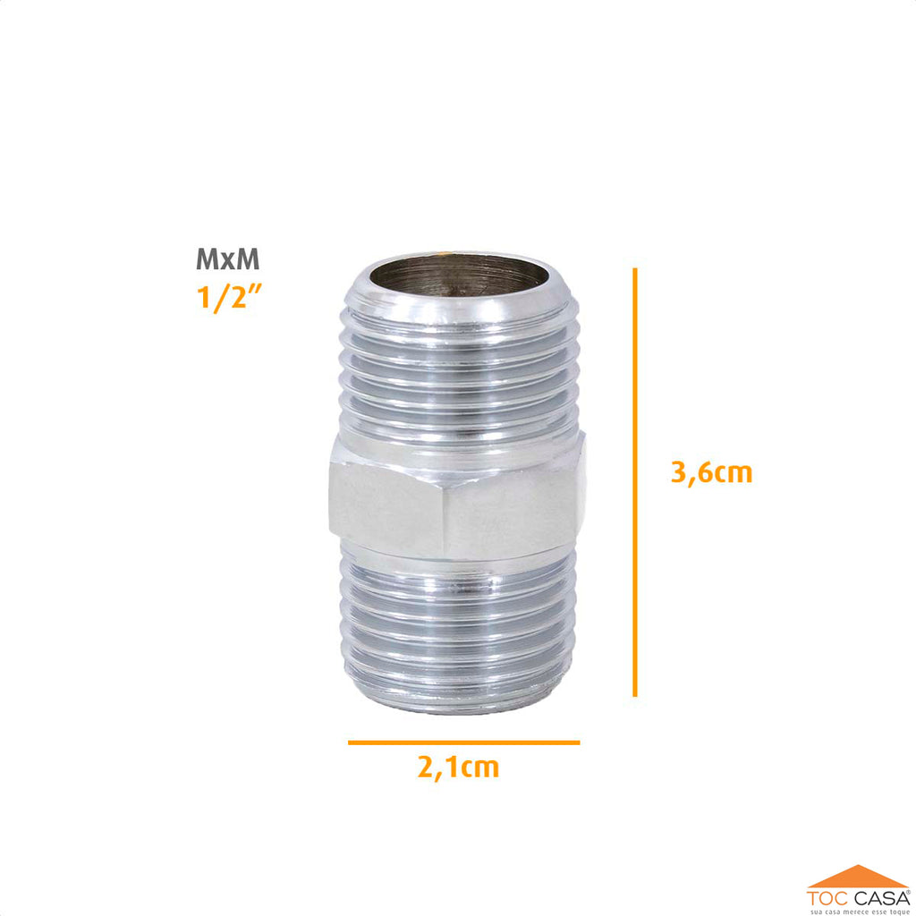 Niple De 1/2 X 1/2 Macho X Macho Em Metal Cromado