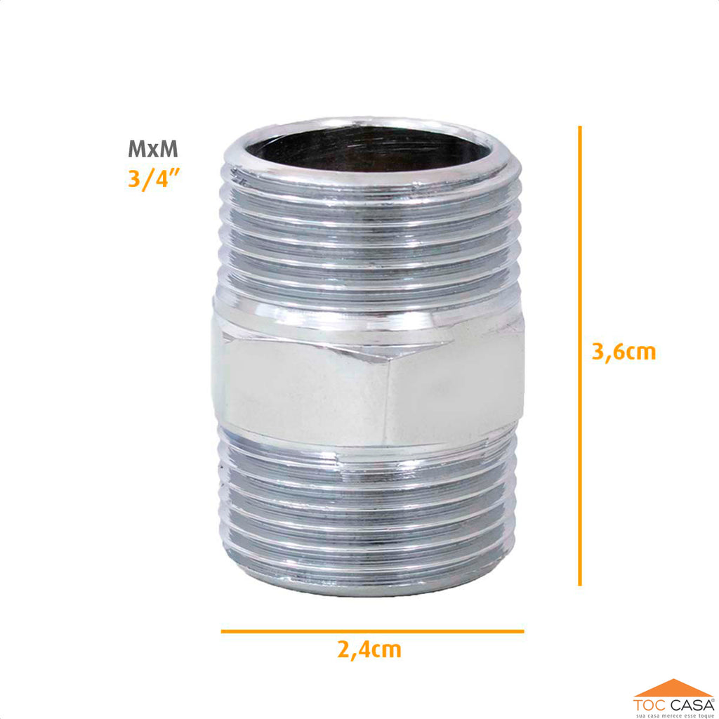 Niple Macho X Macho De 3/4 X 3/4 Em Metal Cromado