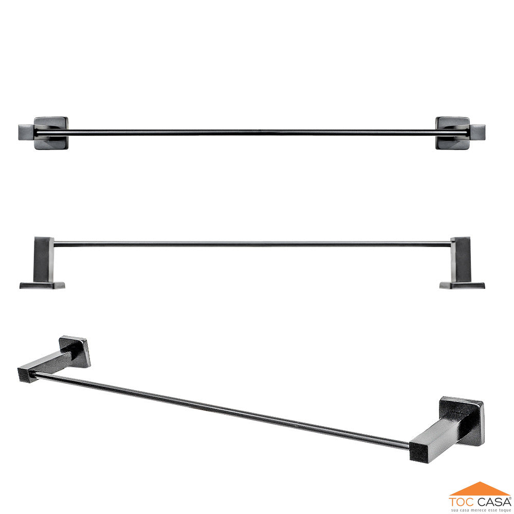 Porta Toalha Bastão 45cm Preto Inox Toalheiro Banheiro - Preto