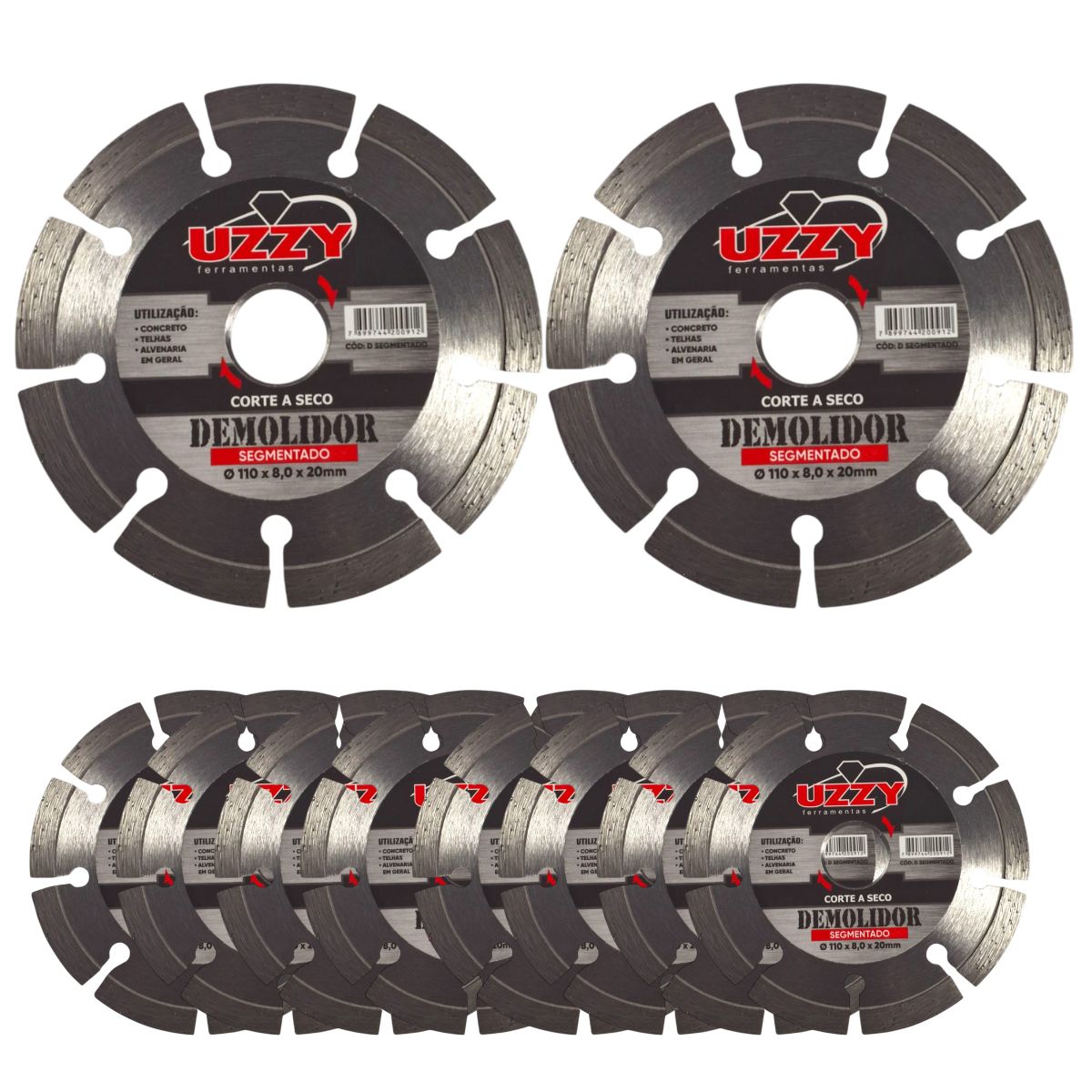Kit 10 - Disco de Corte - Segmentado - Demolidor - 110mm x 20mm x 8mm