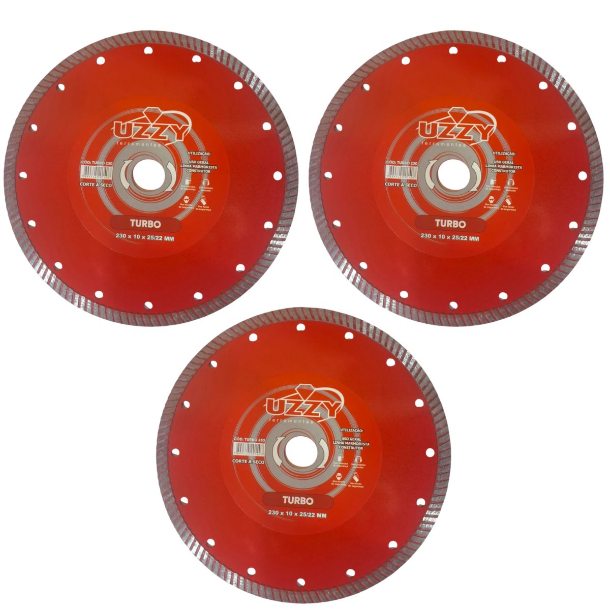 Kit 3 - Disco de Corte - Turbo - Diamantado - 230mm x 10mm x 25/22mm está em espera e será enviado assim que estiver de volta em estoque