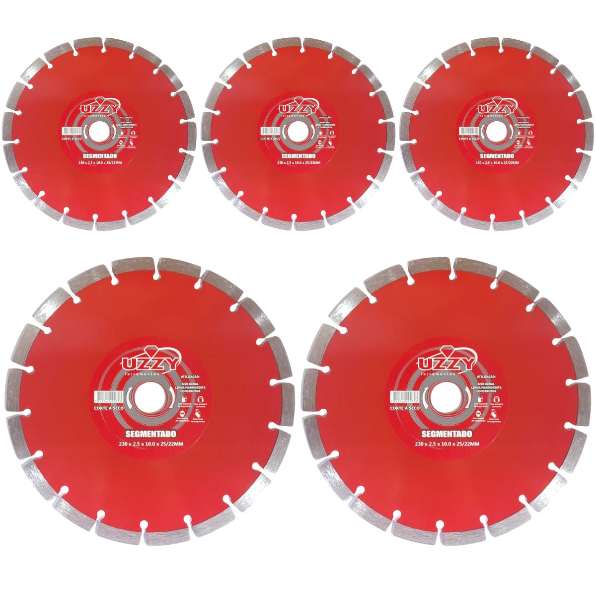 Kit 5 - Disco de Corte - Segmentado - Diamantado - 230mm x 10mm x 25,4mm está em espera e será enviado assim que estiver de volta em estoque