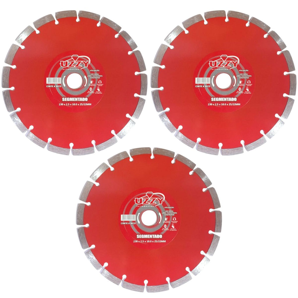 Kit 3 - Disco de Corte - Segmentado - Diamantado - 230mm x 10mm x 25,4mm