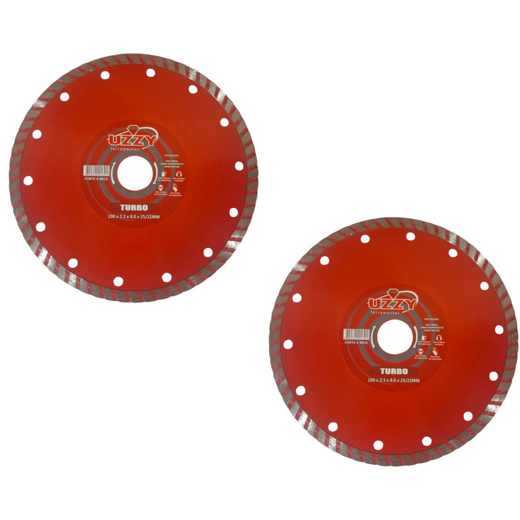 Kit 2 - Disco de Corte - Turbo - Diamantado - 180mm x 8mm x 25/22mm