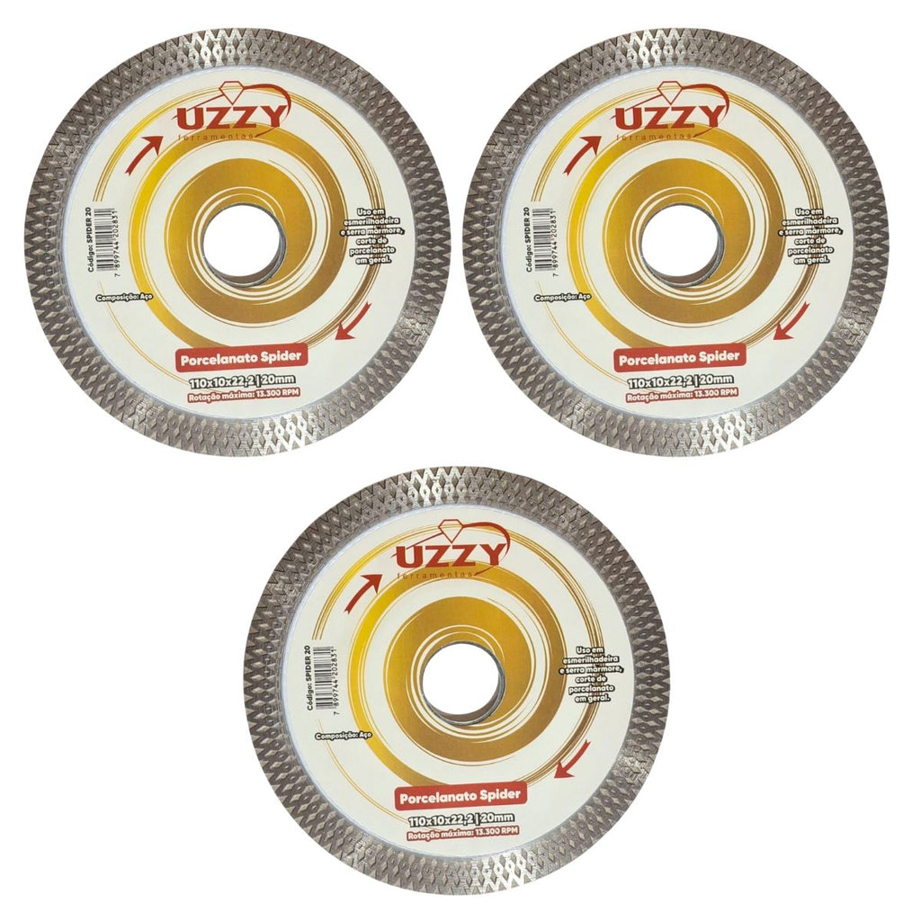 Kit 3 - Disco de Corte - Porcelanato - 110 x 10 x 22,2/20mm - Spider