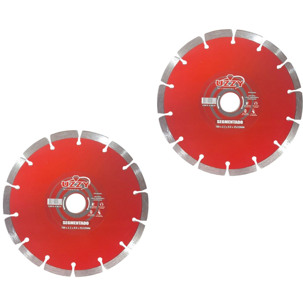Kit 2 - Disco de Corte - Segmentado - Diamantado - 180mm x 8mm x 25/22mm
