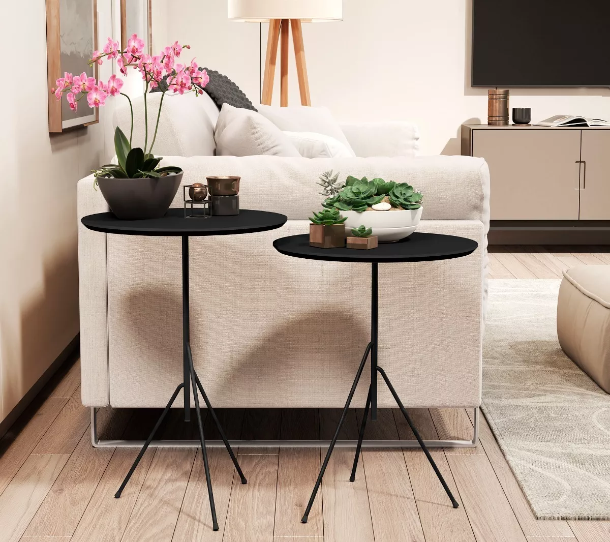 Conjunto Mesas De Canto Lateral Mesinha Bari Preto - Preto