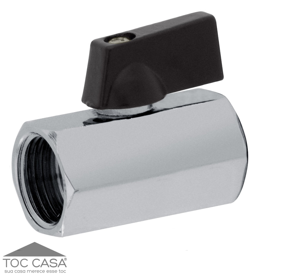 Válvula Registro Mini Esfera 1/2 Fêmea x Fêmea Cromada Alavanca On OFF IVM Italy Latão Cromado