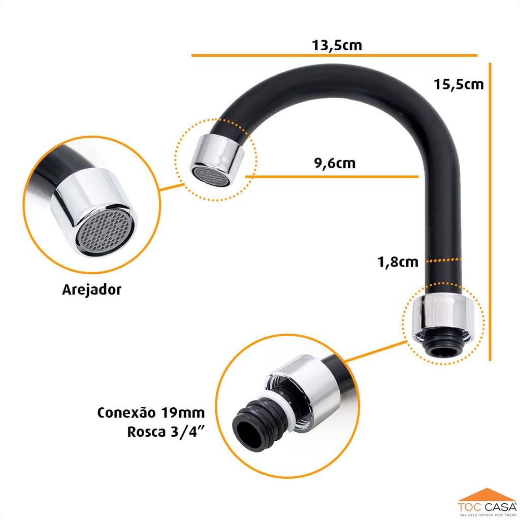 Tubo Bica 3/4 P/ Torneira Lavatório Abs Preto Arejador Fixo está em espera e será enviado assim que estiver de volta em estoque