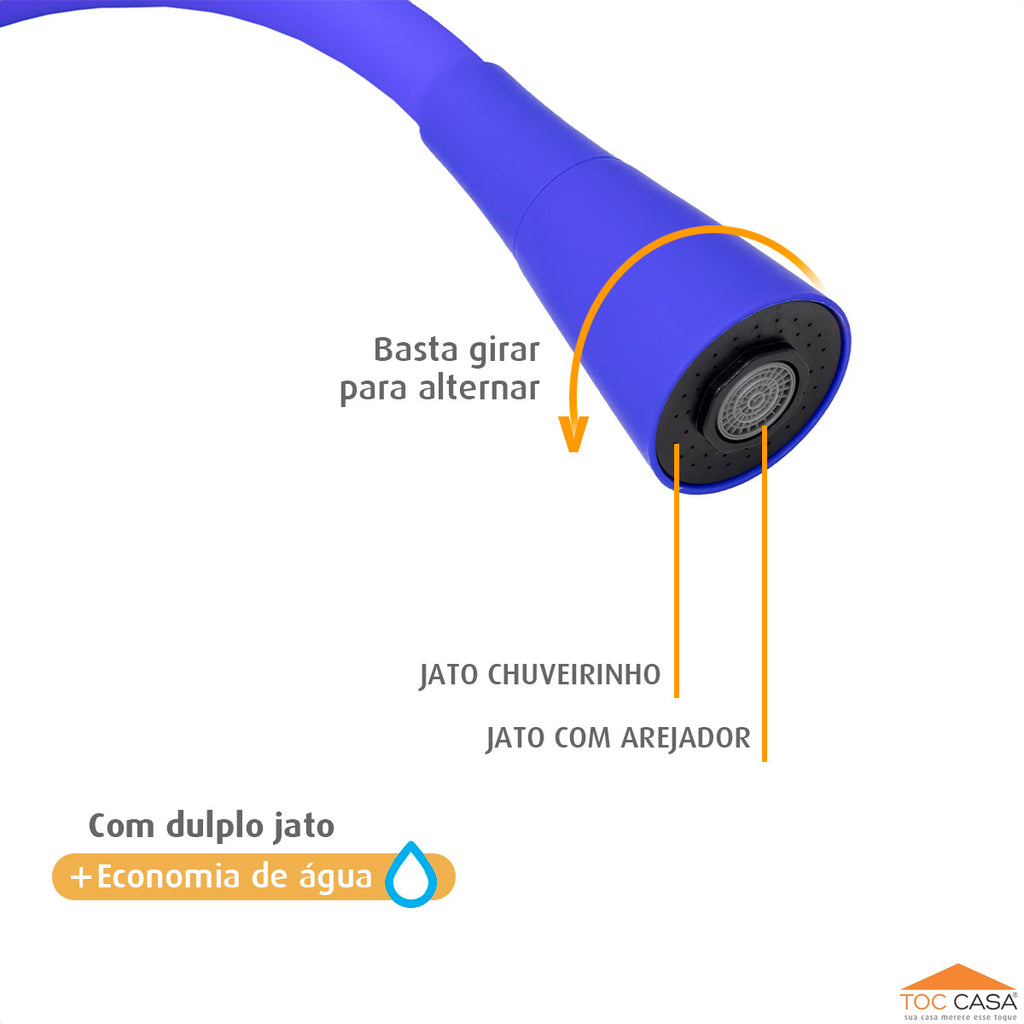 Torneira Cozinha Mesa Silicone Azul C29 Cone Jato Duplo