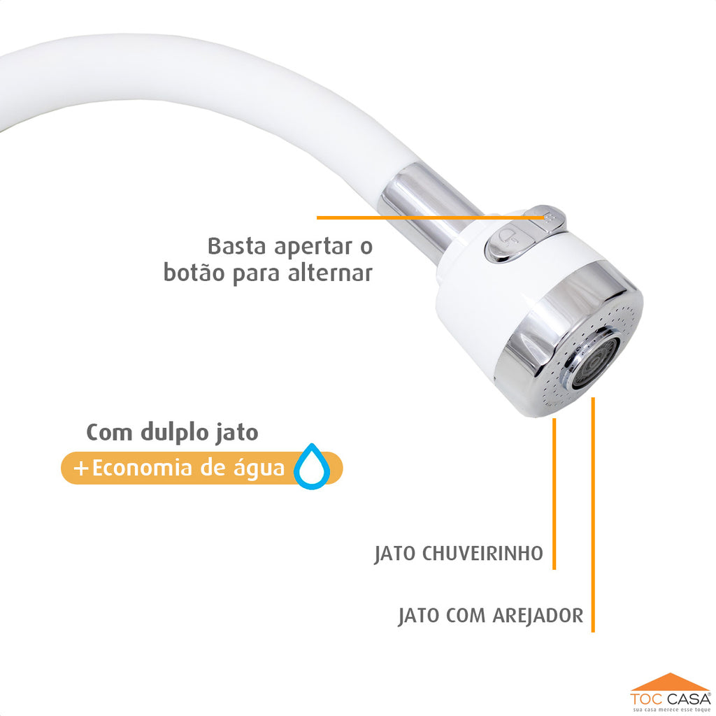 Torneira Cozinha Mesa Flexível Branca C29 Duplo Jato Gourmet