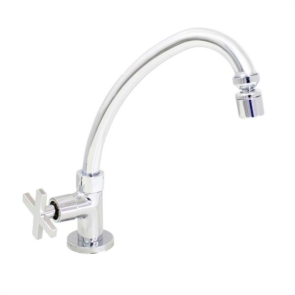 Torneira Cozinha Mesa Bica Móvel Cromada C29 Arejador Fixo