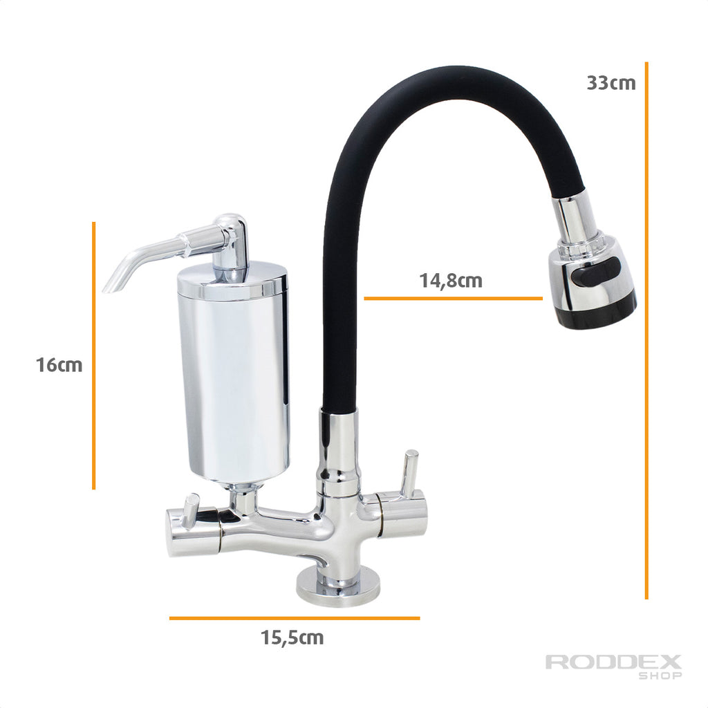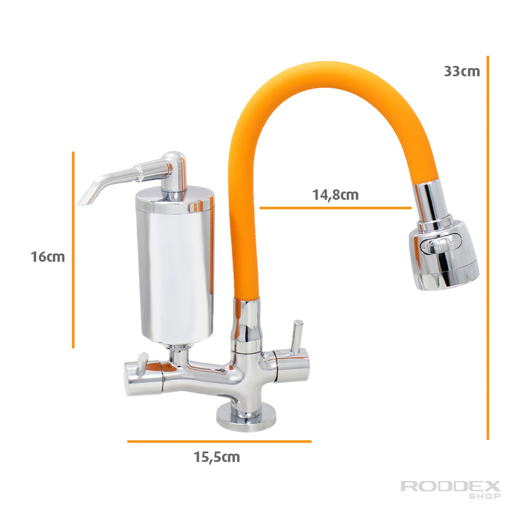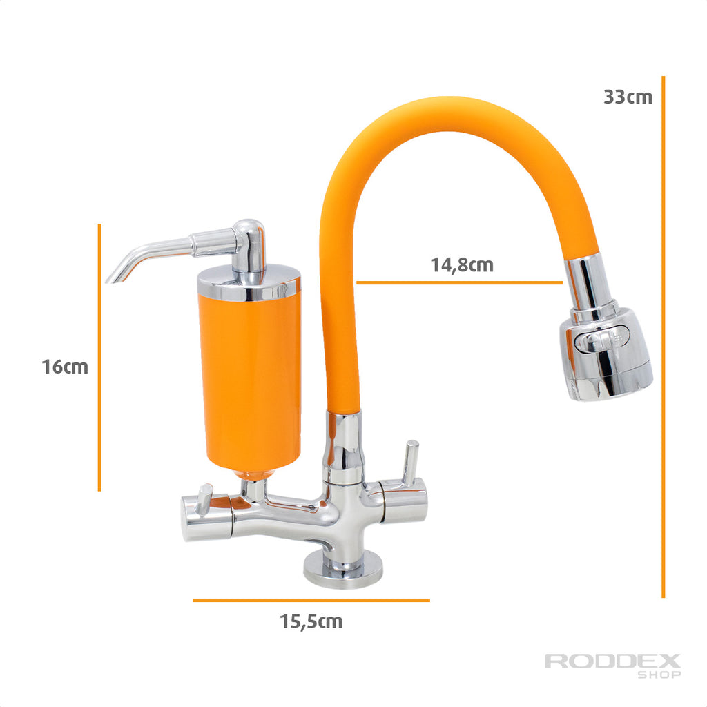 Torneira de Cozinha de Mesa Laranja Com Filtro Cromado