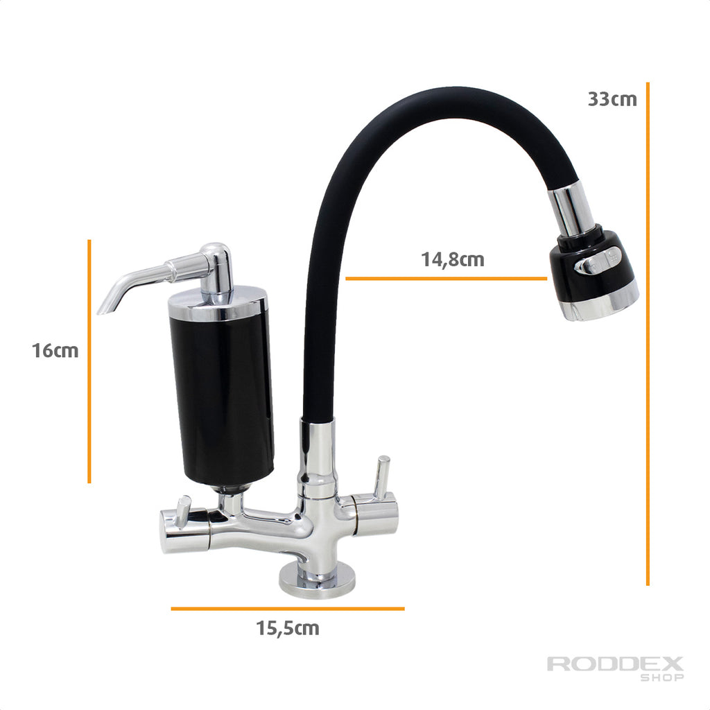Torneira de Cozinha de Mesa Preto Com Filtro Preto