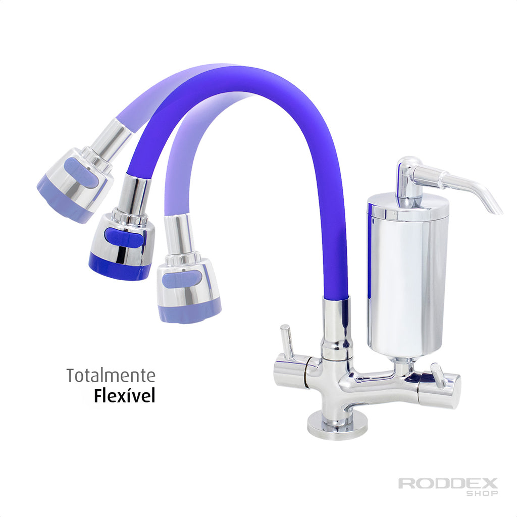 Torneira de Cozinha de Mesa Azul Com Filtro Cromado