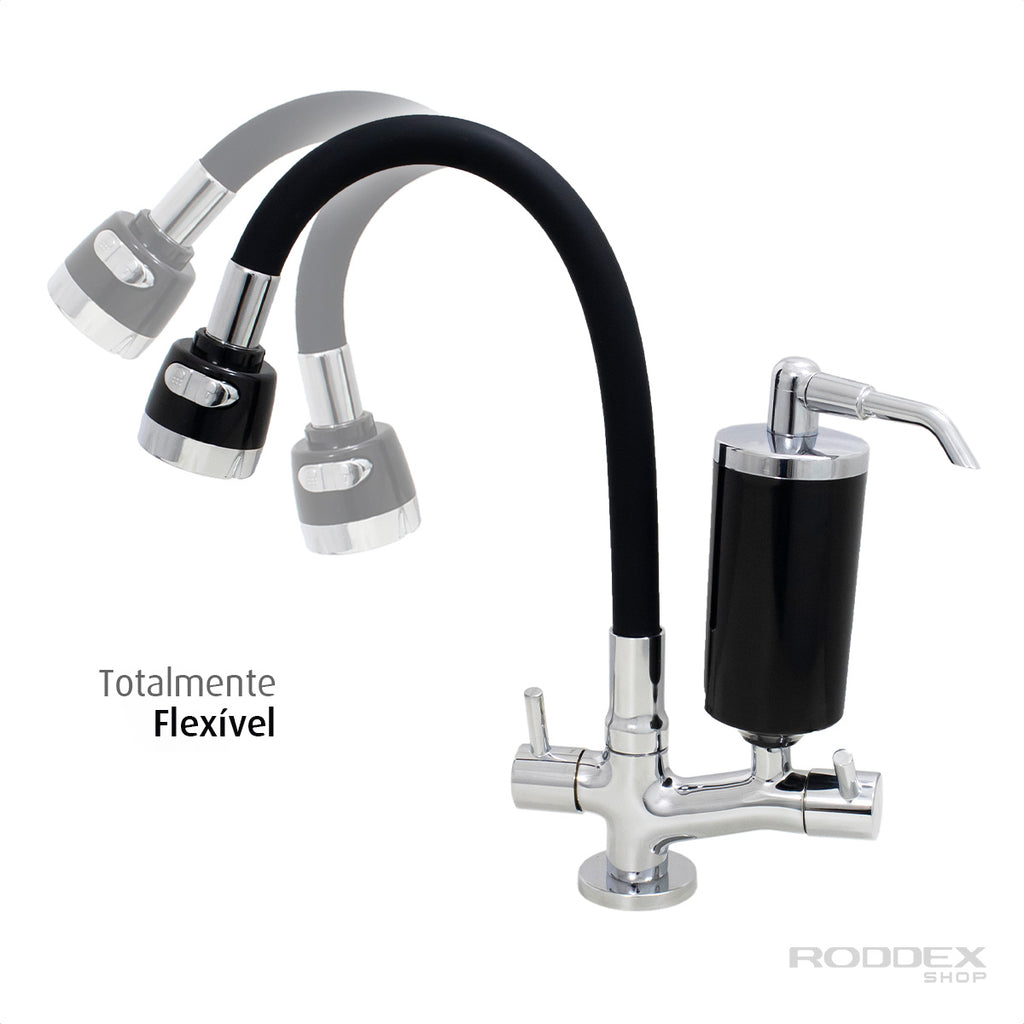 Torneira de Cozinha de Mesa Preto Com Filtro Cromado