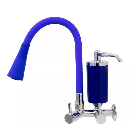 Torneira Filtro Cozinha Parede Cone Gourmet Azul Duplo Jato - Azul