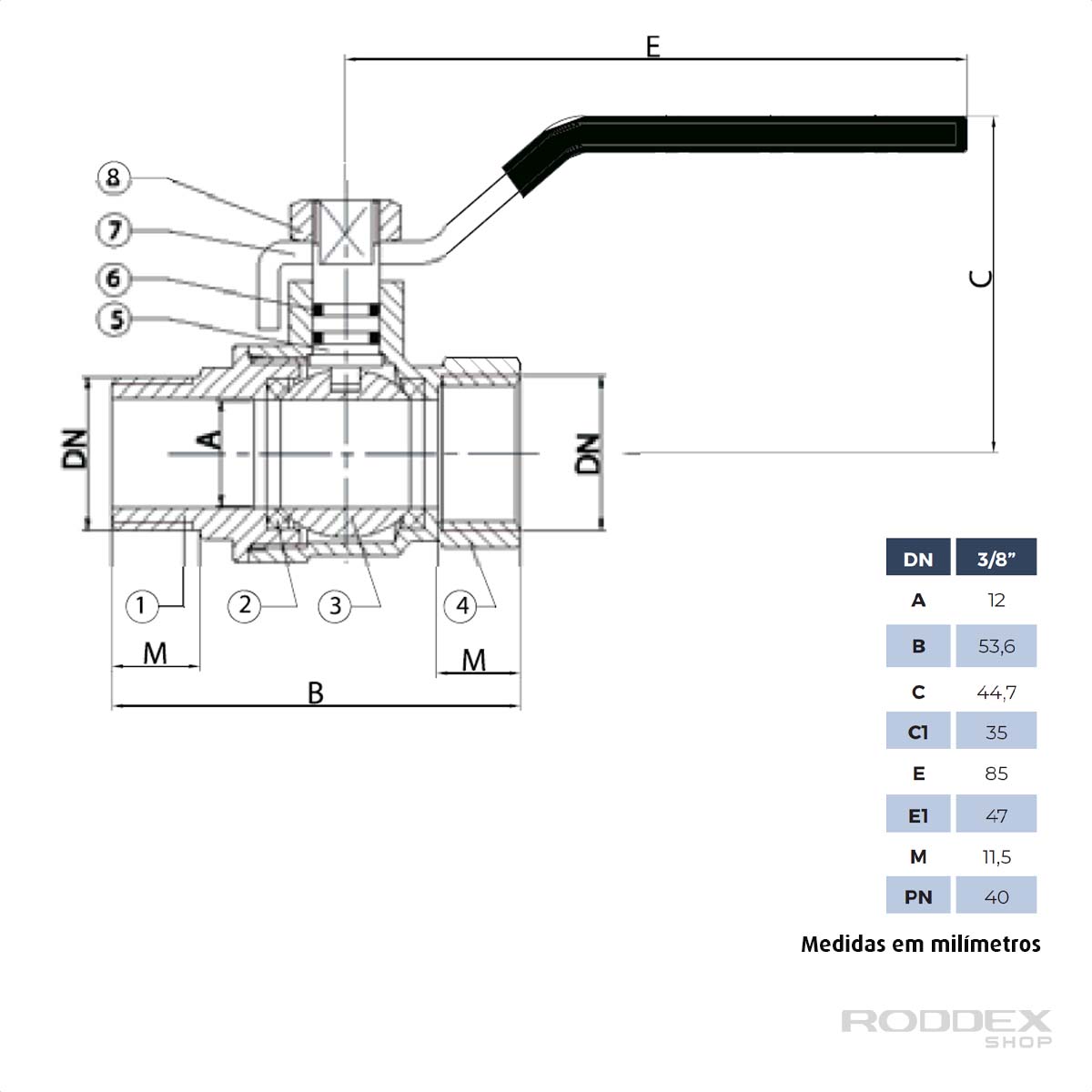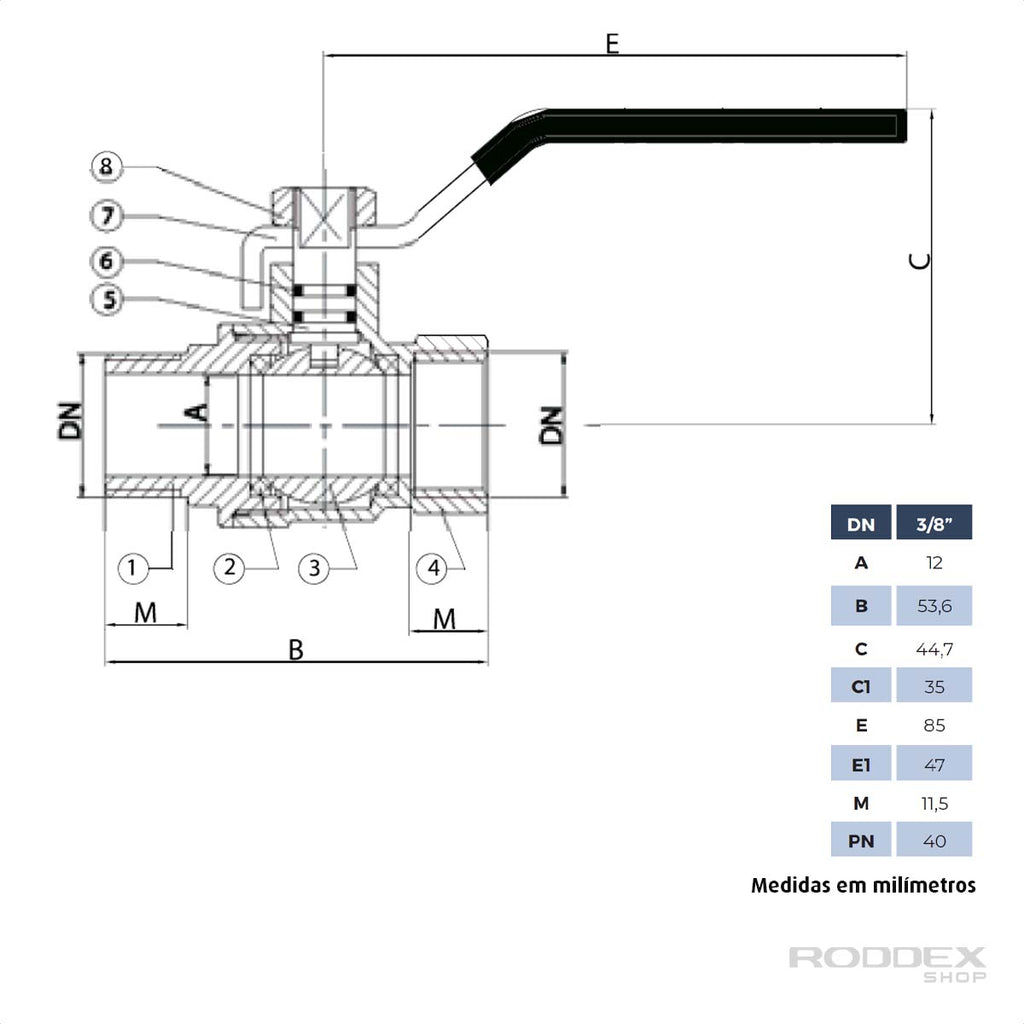 Registro Válvula Tipo Esfera Passagem Plena Macho x Fêmea com Alavanca – IVM ITALY