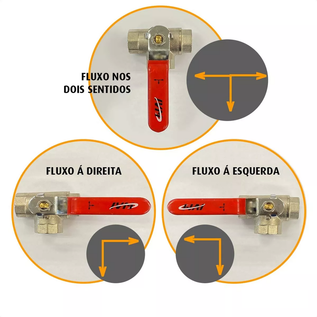 Válvula Esfera 3 Vias Em T 3/8 Alavanca Fêmea x Fêmea x Fêmea PN25 Latão Forjado Niquelado IVM Italy