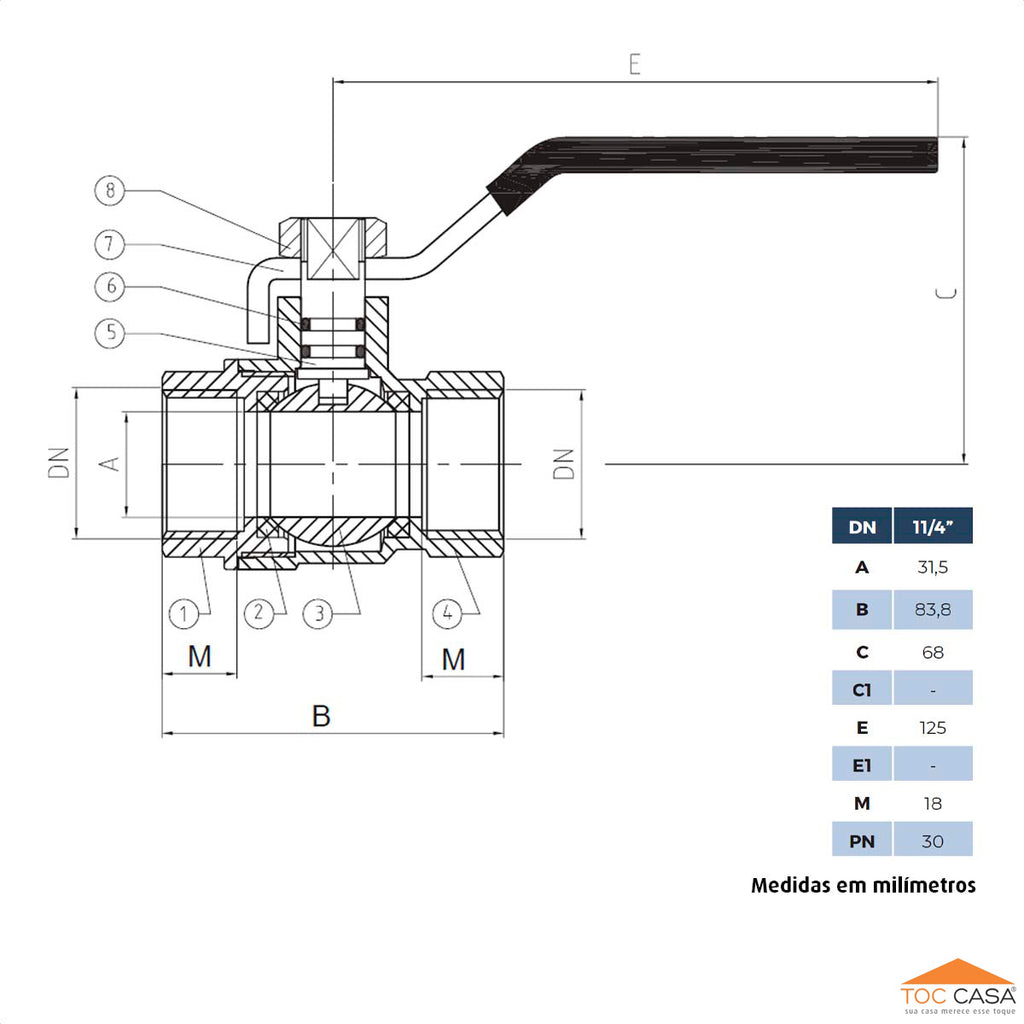 Válvula Esfera 1.1/4 Passagem Plena Fêmea x Fêmea Latão Forjado Alavanca Industrial PN40 IVM Italy