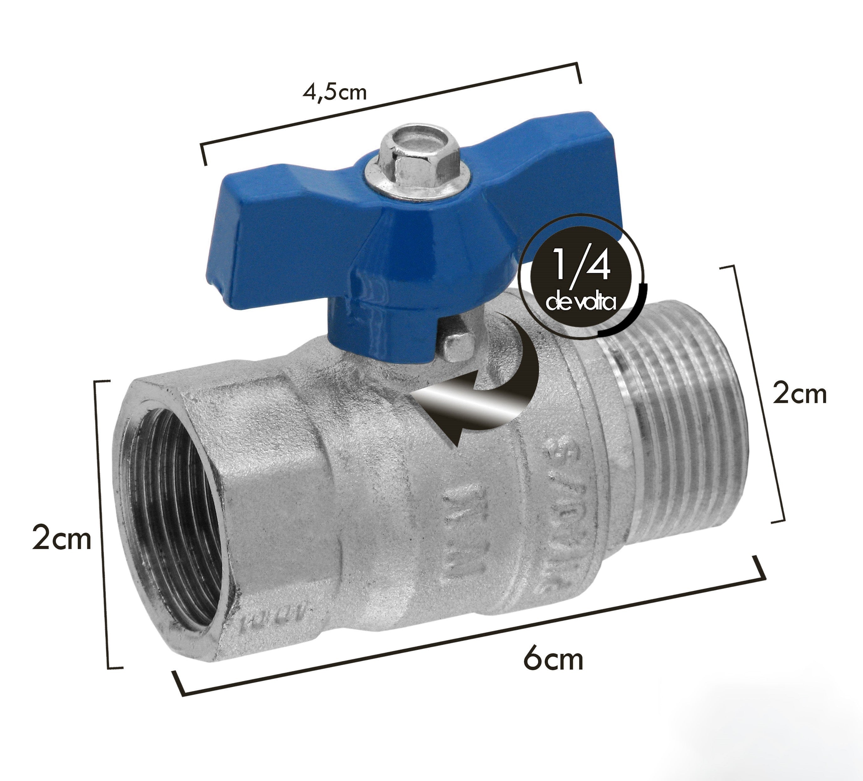 Válvula Esfera 1/2 Passagem Plena Macho x Fêmea Latão Forjado Borboleta Industrial PN40 IVM Italy
