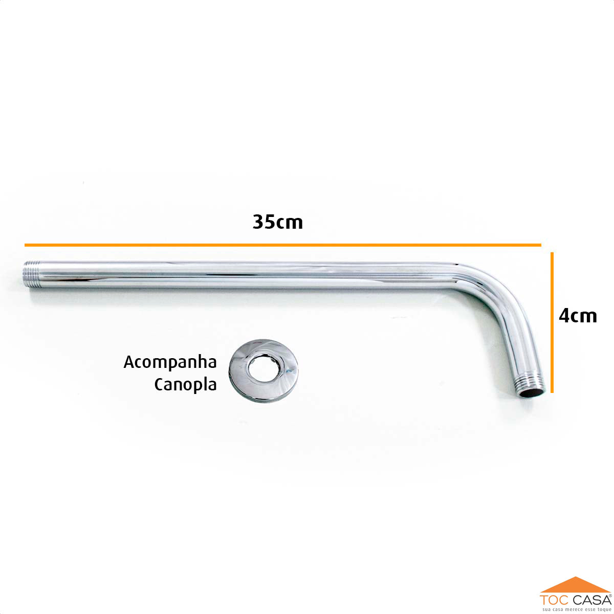Braço De Chuveiro Longo 35 Cm Em Metal Cromado