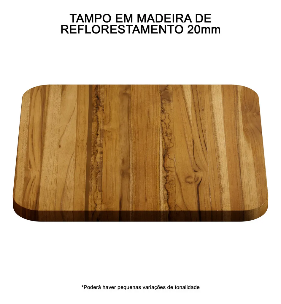 Tampo em madeira maciça de reflorestamento, pode haver variação de tonalidades e veios.