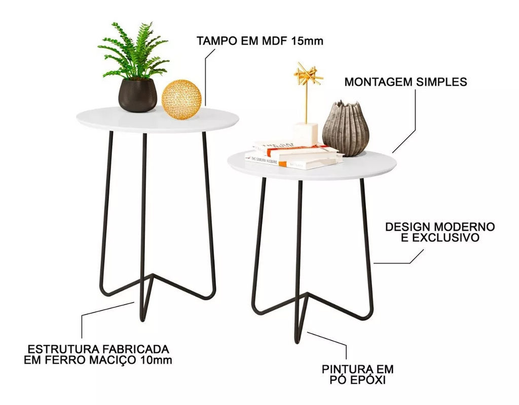 O Conjunto de Mesa Lateral Roma, é um produto indispensável no complemento da sua decoração. São funcionais, praticas e elegantes, dando um toque de requinte e personalidade na sua casa.